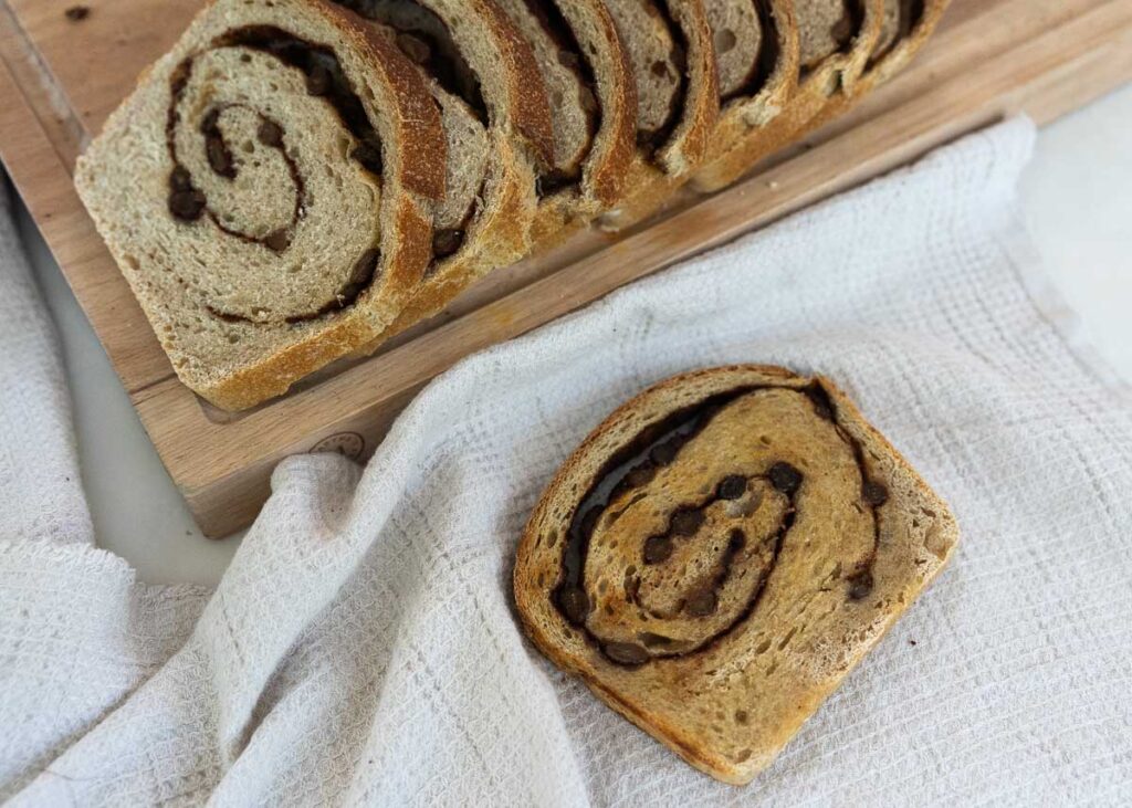 I love to make this cinnamon swirl bread, slice it, and keep it in the freezer so that my family can grab a slice and pop it in the toaster in the morning when they are making their own breakfast.